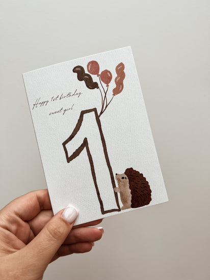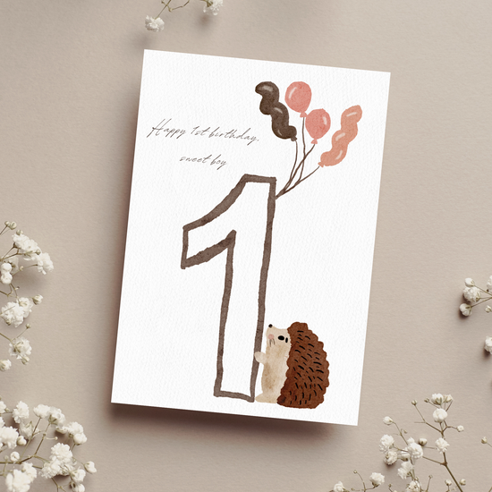 A beautiful A6 greeting card for a 1st birthday. The inner is blank for your own message.