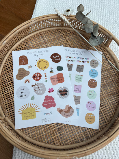 Planner, motivational and kids stickers in size A5 and printed on paper for easy writing.
