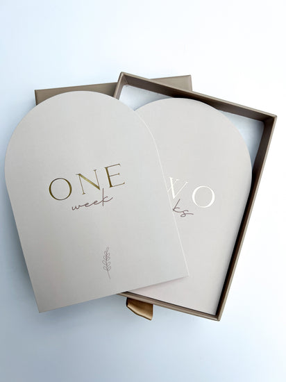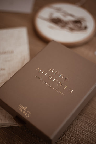 Our arch milestone cards are an absolute must for a new mama who wants to document her little one’s journey. They come in a beautiful matching mocha drawer box (a perfect gift!).