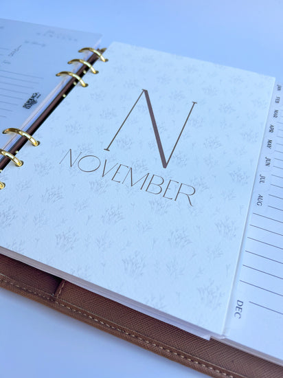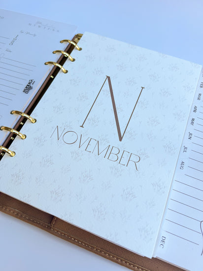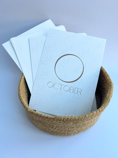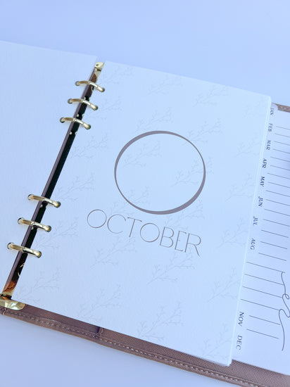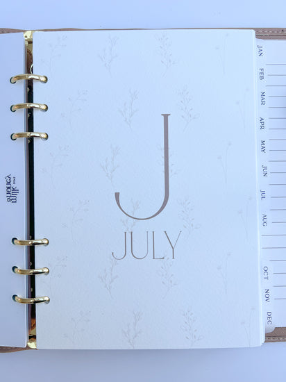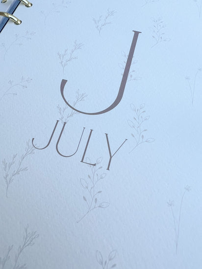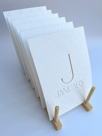 Our Bloom Monthly Dashboards are made from 300gsm Italian textured paper. Each month features a different minimalistic botanical design.