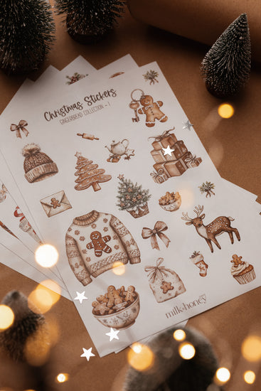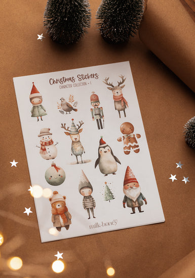 Each pack of stickers comes with 5 different sheets - 2 sheets from our rustic collection, 2 sheets from our gingerbread collection and 1 sheet from our Christmas character collection.