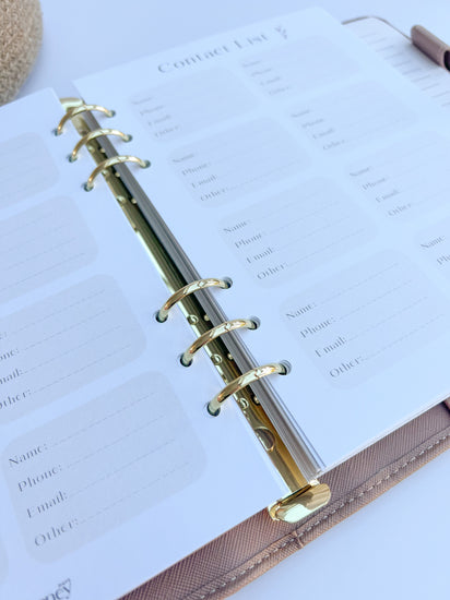 8 double sided pages of Contact Lists made from 100gsm white paper.