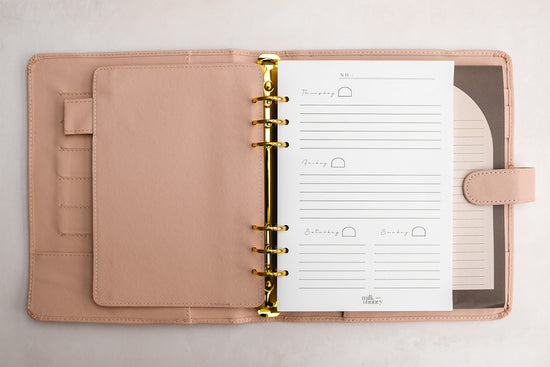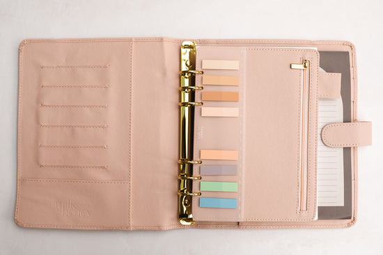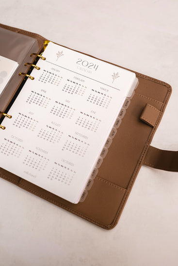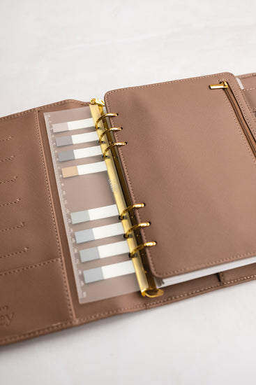 All our organiser covers contain 6 hole ring binders and hold size A5 inserts, tabs and dashboards.