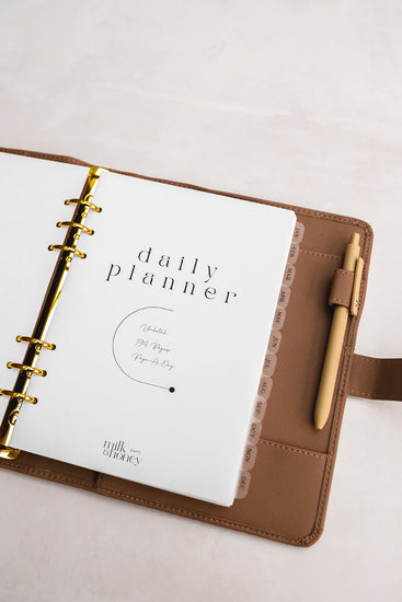 Our Faux Leather textured organiser covers are lightweight and durable. They snap shut with a strong magnetic closure.