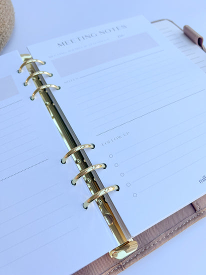 A set of 8 double sided pages that are made for any of our organiser covers. These meeting notes are perfect to note down important parts of any meeting (corporate, with school teachers, literally anything).