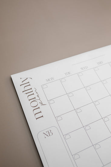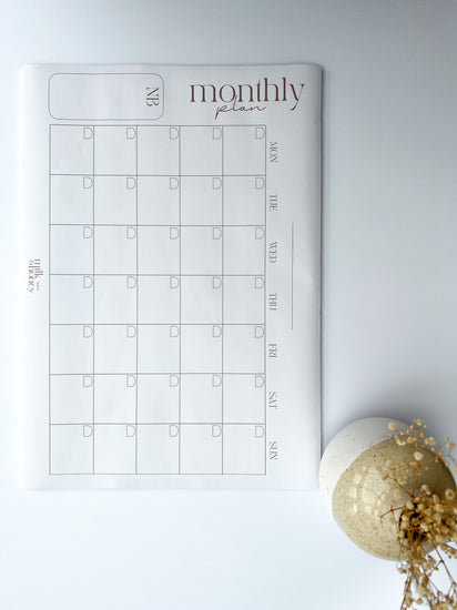 Our A3 monthly deskpad has a minimalistic design with a beautiful layout to plan the month ahead. It also contains an ‘NB’ box to note down any important commitments, tasks and anniversaries for the month.