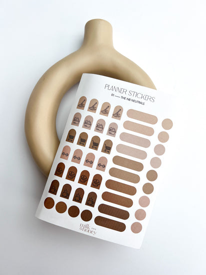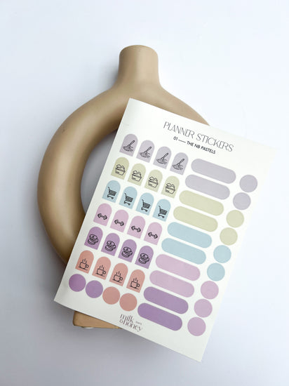 Our sticker sheets contain both blank stickers for you to pop down what’s most important as well as stickers with small icons.
