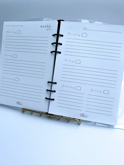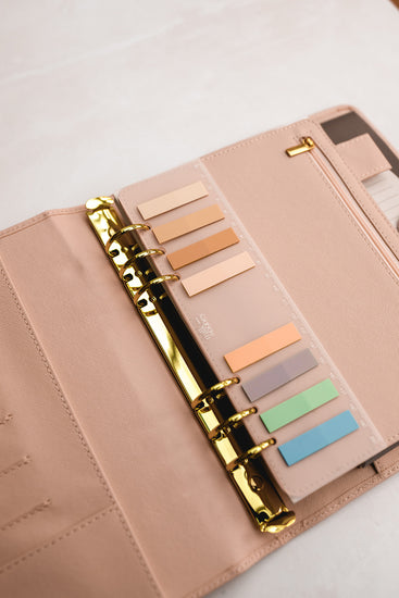 Introducing our exclusive ‘Powder Collection bundle’. This carefully curated collection brings together a selection of our most popular products in our most popular shades of pastel, offering you a convenient and cost-effective way to enhance your experience and up your stationery game. These are for the lover of a light pop of colour. This collection includes: A Saffiano Organiser cover in Powder with matching zip pouch, monthly/weekly or daily inserts, monthly frosted divider tabs, 2 pages of ‘The Pastel’ vinyl stickers & a ruler with 8 sticky tabs