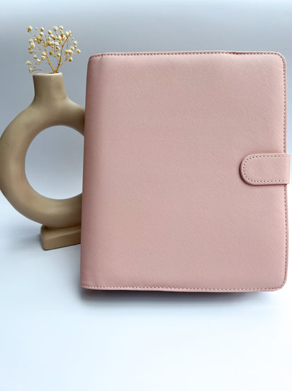 A Saffiano Organiser cover in Powder with matching zip pouch