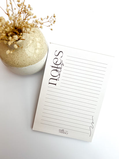 A5 notepad with 50 pages of 100gsm recycled paper. Pages can be torn off from the short end (vertical).